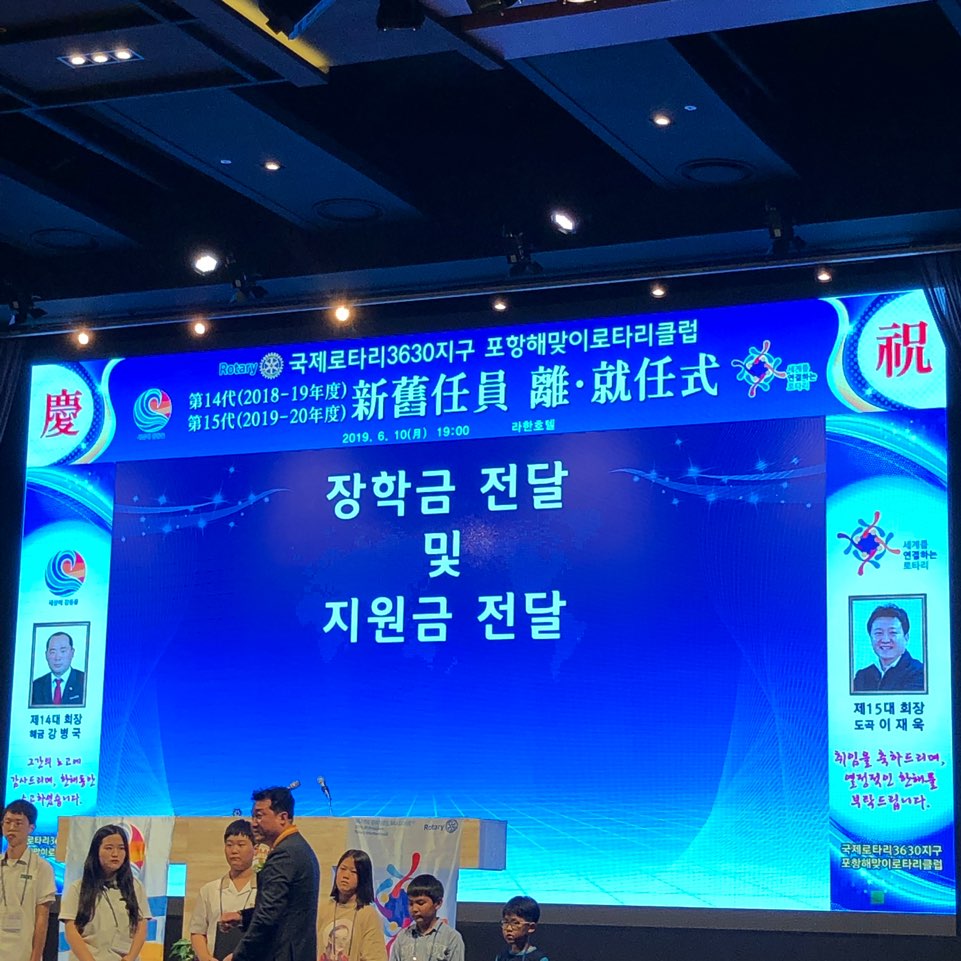 2019년 06월 10일 (월) 포항해맞이로타리클럽에서 포항대학교 응급구조과 재학생 2학년 백지혜, 2학년 이현석이 장학금을 수여받았다.