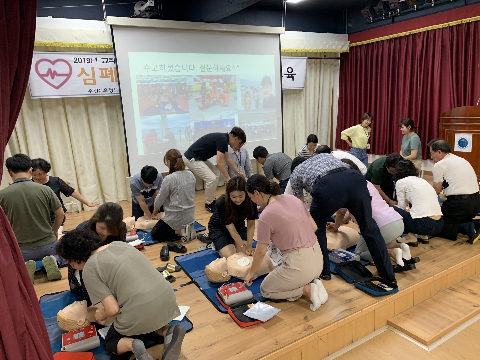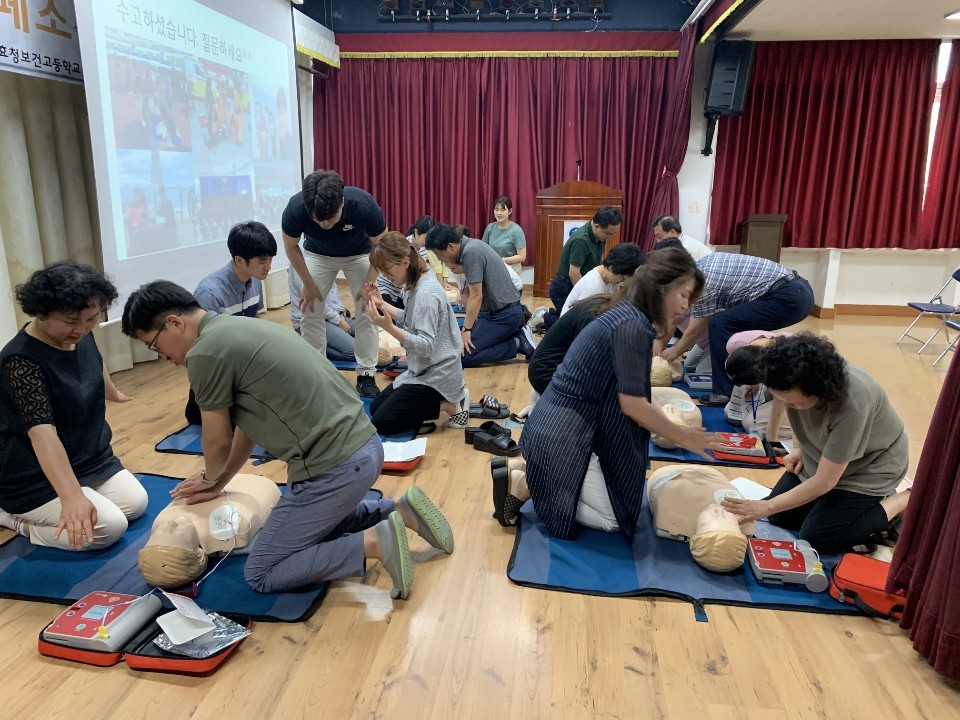 2019년 07월 02일 포항대학교 응급구조과 학과장 박정제 교수님과, 재난지원센터 센터장 배성주 교수님께서 경주 효청보건고등학교에서 심폐소생술 교육을 했습니다.