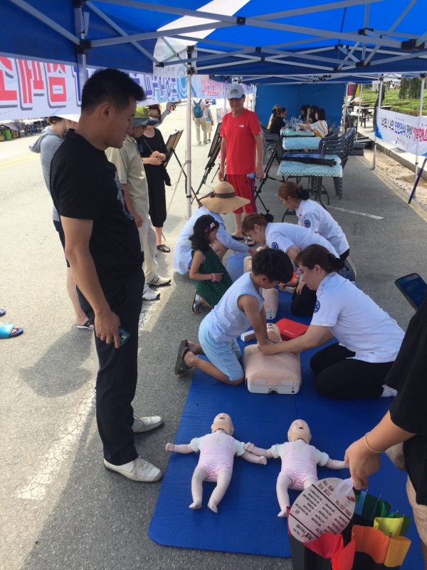 2017년 8월19일(토) 영일대에서 운영된 바른생활안전 시민문화제에 포항대학교 응급구조과 3학년학생들이 심폐소생술 체험학습을 진행하였습니다.