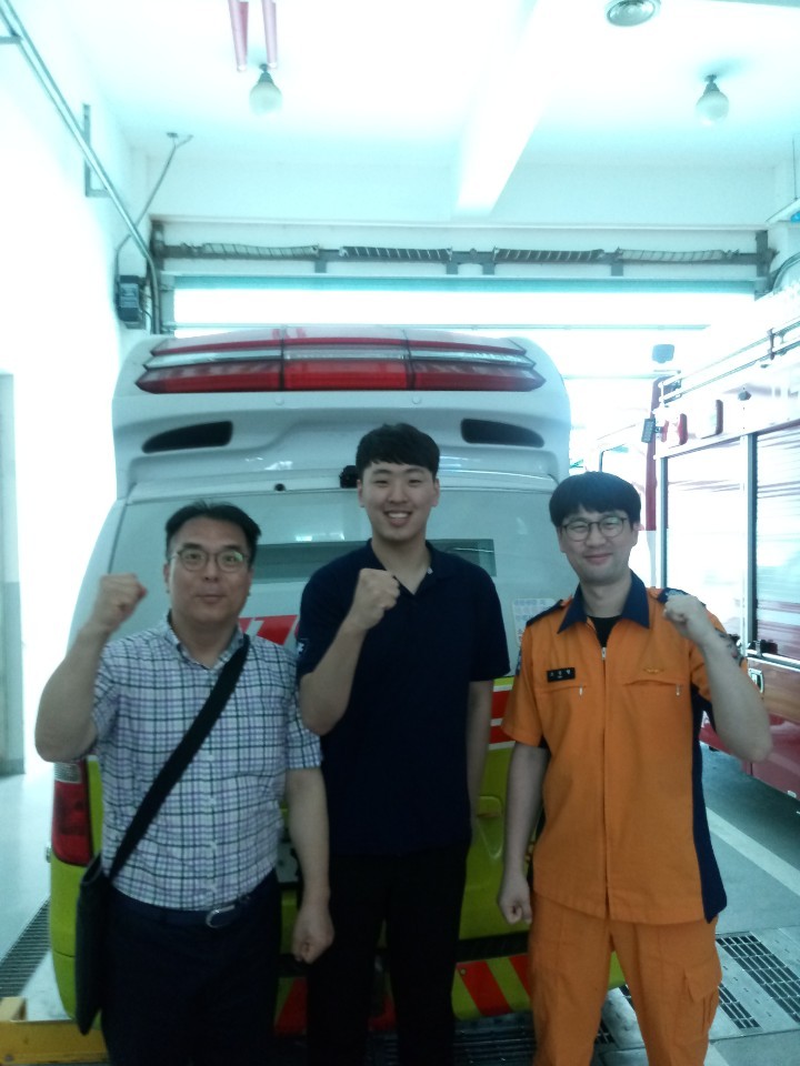 뜨거운 여름 안전장비를 착용하고 구급출동을 나가는 건 정말 힘든 일 이지만 현장에 직접 출동하여 현장처치법과 이송법을 배우는 건 정말 좋은 경험으로 남겨질 것입니다.