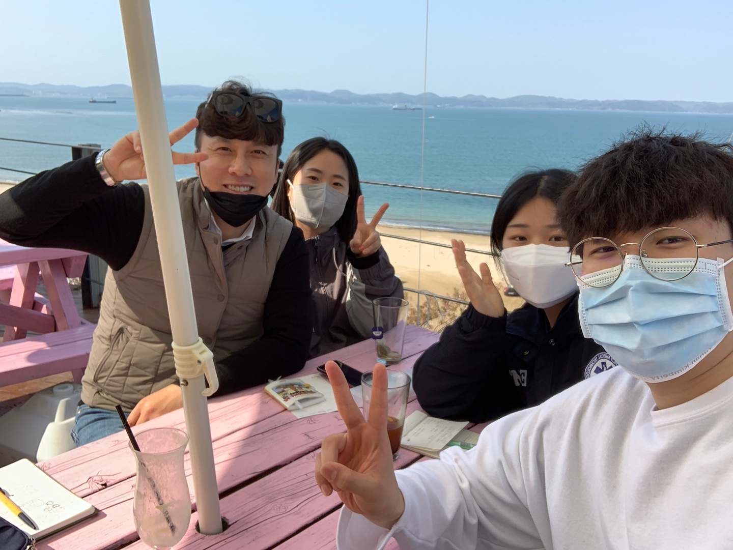 전망이 멋진 카페에서 멋진 박정제 교수님과 이쁜 신입생 친구들이 멘토-멘티하는 시간을 가졌습니다!