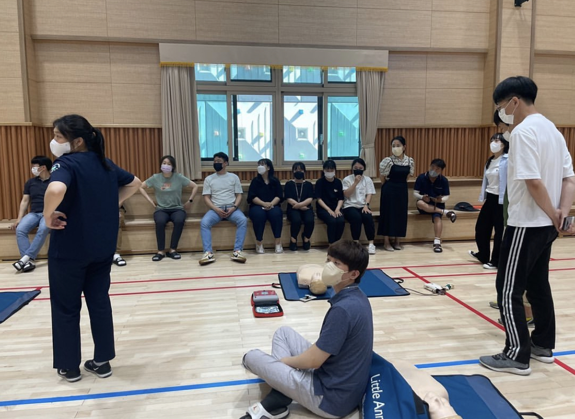 을 진행하였고 소아, 성인 심폐소생술과 자동심장충격기를 실습하였습니다.