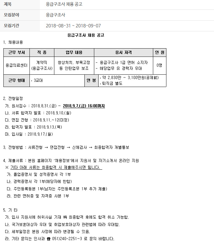 한양대학교 응급의학과 응급구조사 채용