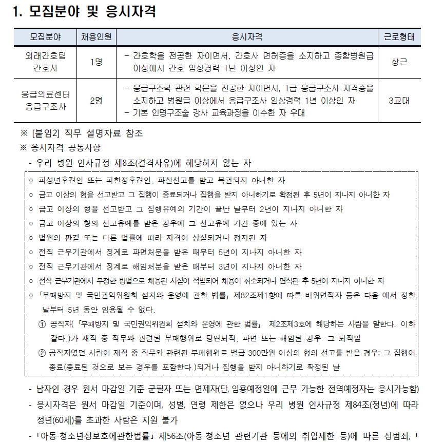 건양대학병원 권역응급의료센터 응급구조사 모집(~119까지)