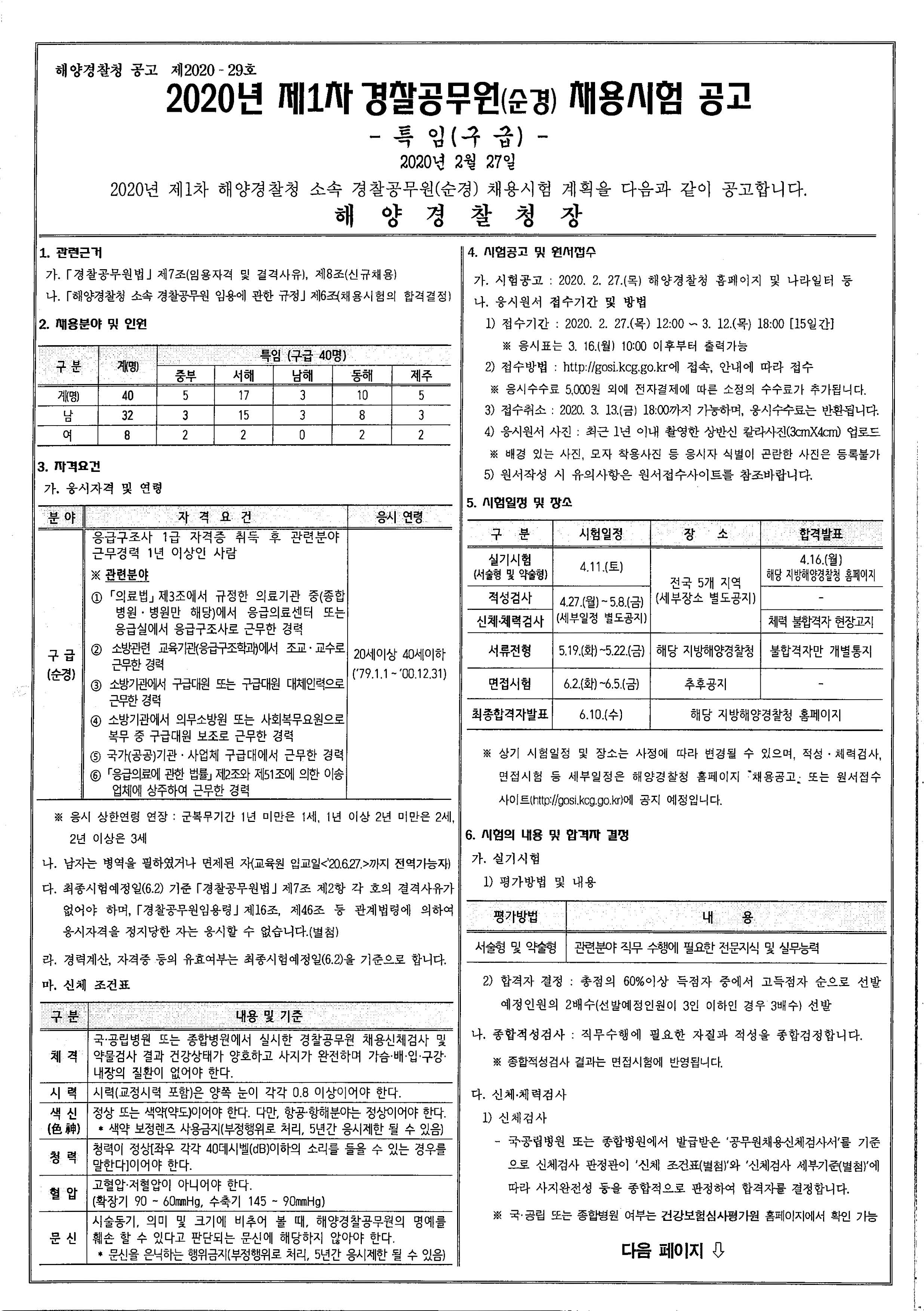 체력 검사표 및 가산점 인정 항목 등에 대하여 파일 첨부를 해놓았으며, 자세한 사항은 해양 경찰청 홈페이지를 참고 바랍니다.
